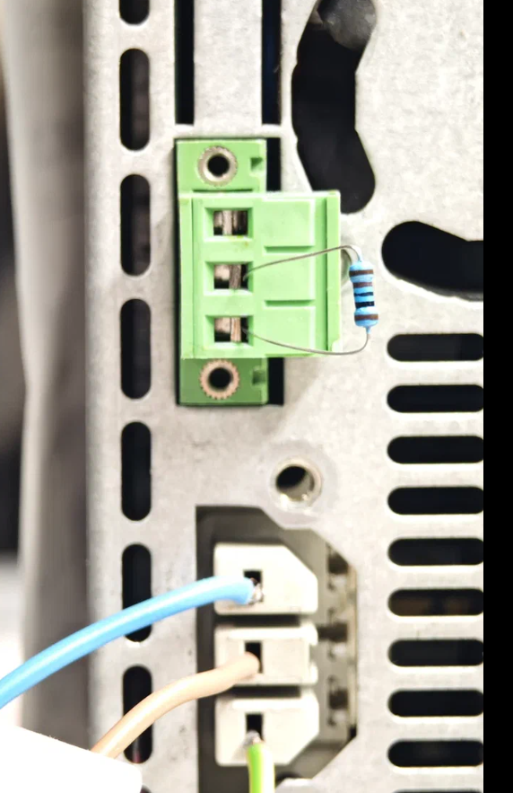Не забыть подключить эмулятор термистора двигателя — резистор 1 кОм к разъему X13, контакты 2,3.