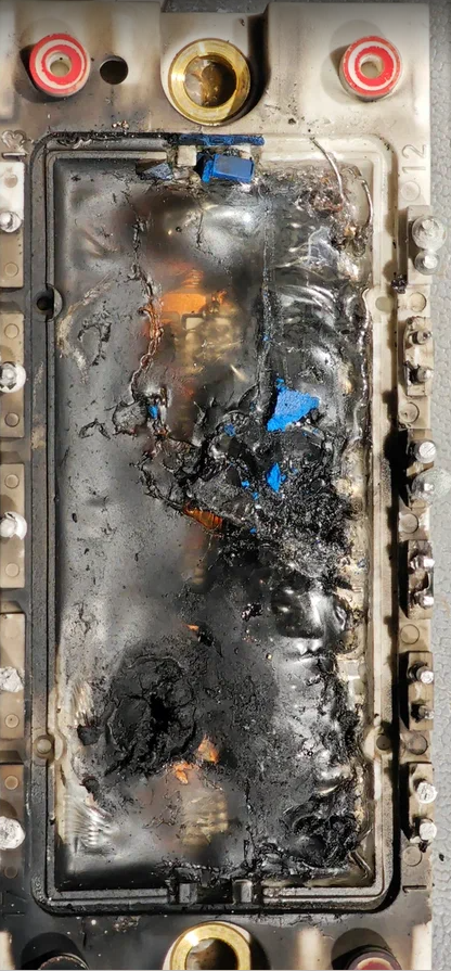 Первичный осмотр визуально показал к замене лишь три типа элементов: Силовой модуль, Диодный мост, 4 шунтирующих токоограничивающие сопротивления Реле с пригоревшими замкнутыми контактами.